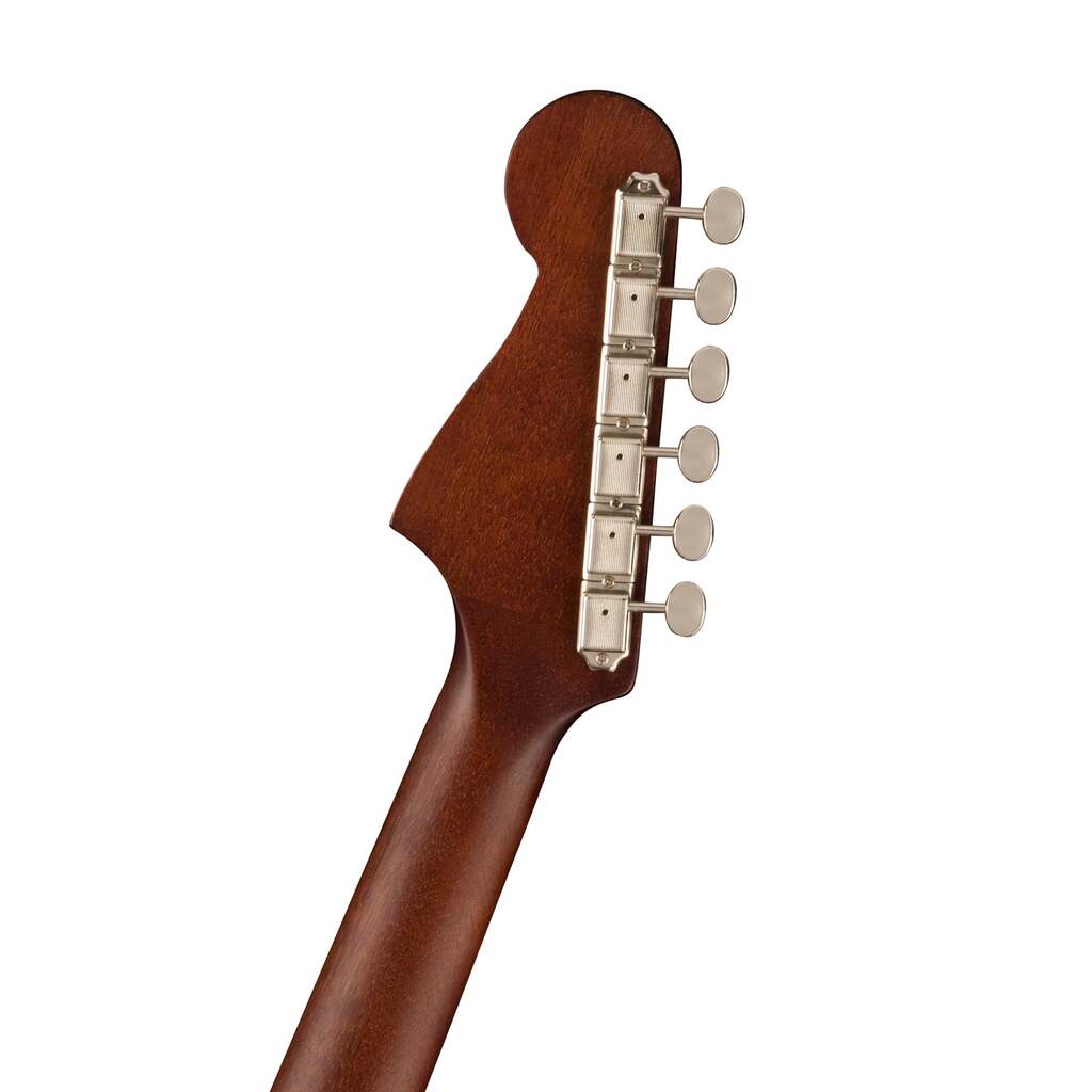 Crafted with an X-braced solid spruce top and sapele back and sides, the compact parlor-sized body of the Malibu Player produces a sweet, articulate voice that encourages players to reach for new chords and melodies. The nato neck is designed with an easy-to-play slim "C"-shaped profile, a short 24" scale length, and a tilt-back 6-in-line headstock for a distinctive look born from Fender's electric guitar DNA. Other notable details include vintage-style tuning machines for smooth, accurate tuning, a GraphTech® NuBone® nut and saddle for detailed harmonic character. With elegantly integrated controls for a sleek, modern look, the onboard Fishman® Flex preamp system allows faithful reproduction of the guitar's natural sound when plugged into an amplifier or recording device.