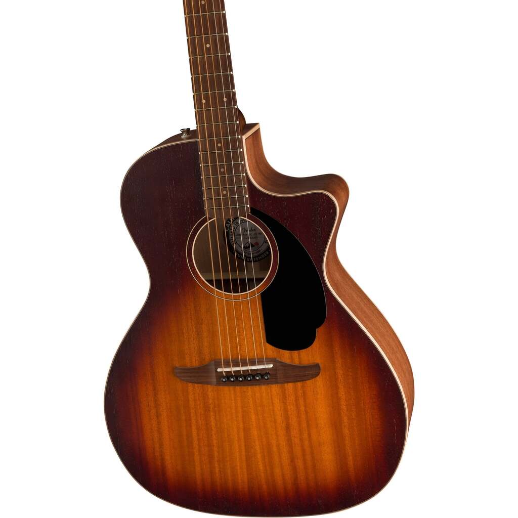 Crafted with an X-braced solid okoume top and solid okoume back and sides, the approachable mid-size auditorium body of the Newporter Special produces a balanced voice that's impressively resonant, articulate and powerful, while offering superior comfort for hours of creativity. The nato neck is designed with an easy-to-play slim "C"-shaped profile, a 25.5" scale length, and a tilt-back 6-in-line headstock for a distinctive look born from Fender's electric guitar DNA. Other notable details include vintage-style tuning machines for smooth, accurate tuning, a maple rosette and body binding for an upscale look, and a bone nut and saddle for rich harmonic character. Designed for the performer, the Fishman® Flex Body preamp system blends an undersaddle piezo and internal body transducer to allow faithful and reliable reproduction of the guitar's natural sound when plugged into an amplifier, PA system or recording device.