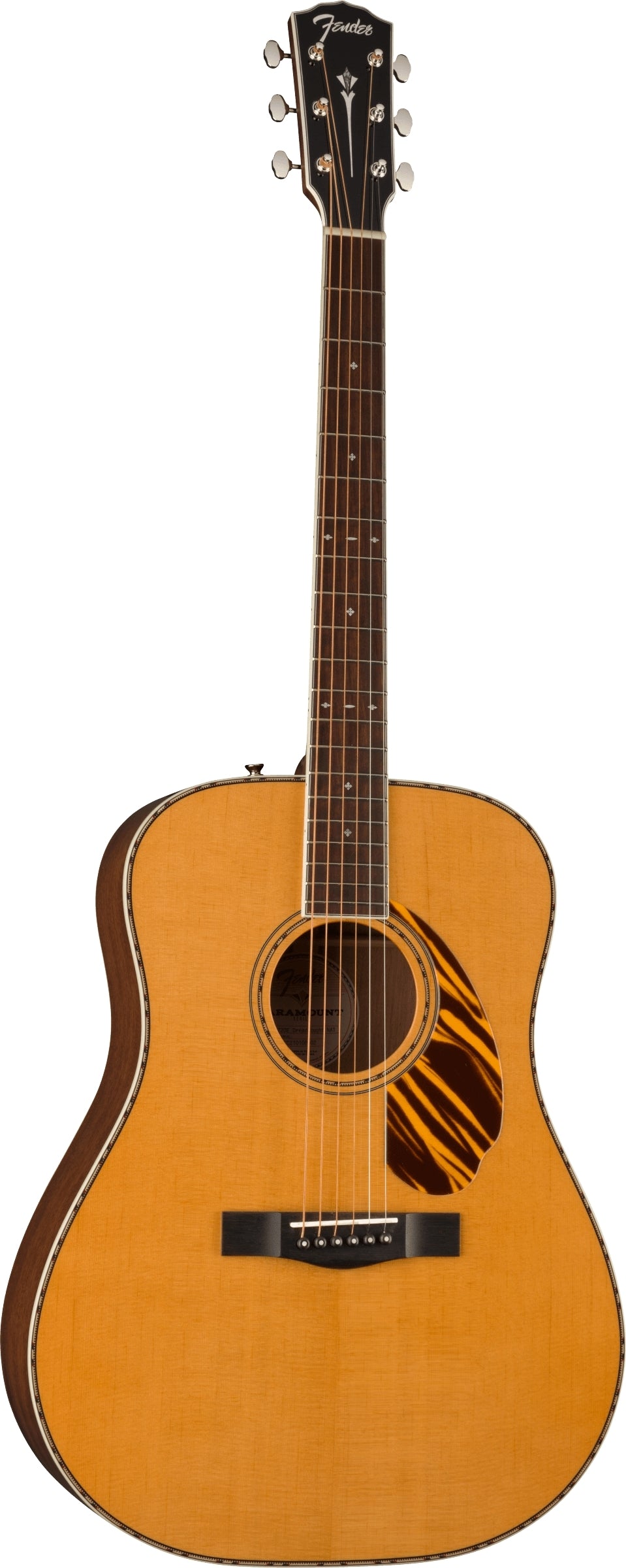 La Paramount PD-220E combine une fabrication de pointe avec des accessoires d'inspiration vintage, offrant le meilleur des deux mondes. Construite avec le choix d'une table d'harmonie en épicéa massif ou en acajou massif, associée à un dos et des éclisses en acajou massif, la PD-220E présente un modèle de barrage en X décalé qui a été soigneusement affiné pour optimiser la résonance et la tonalité. Un tout nouveau micro Sonitone Plus, conçu par Fender et Fishman®, amplifie la sonorité pleine et équilibrée de la forme dreadnought de la PD-220E, tandis que les commandes montées dans la rosace préservent l'esthétique vintage. Sous la table, un micro à détection de corps améliore les vibrations de la table d'harmonie qui peuvent ensuite être mélangées avec le micro Sonicore sous la table.