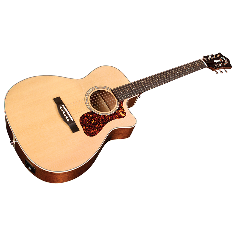 Cette guitare acoustique de taille moyenne en forme d'orchestre convient aussi bien au strumming qu'au fingerpicking et produit une sonorité douce et équilibrée. Le choix parfait pour le musicien polyvalent, l'OM-140CE est dotée d'une table en épicéa de Sitka massif, d'un dos et d'éclisses en acajou africain massif, et d'un élégant pan coupé pour accéder aux frettes les plus hautes. Le système de micros GT-1 de Guild/Fishman dissimulé confère à cette guitare une amplification parfaite pour les concerts et les prestations live. Le sillet et la selle en os ainsi que la rosace en nacre sont d'autres caractéristiques haut de gamme. Ce modèle présente également une largeur de sillet de 1 3/4 po sur un manche de Guild de forme vintage, l'emblème de Chesterfield sur la poupée rappelant les Guild des années 1960, un pickguard en écaille de tortue d'époque et la nouvelle housse de transport acoustique premium de Guild.