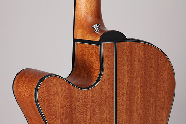 The Taka-mini GX18CE-NS is a 3/4-size guitar with a full-size voice. Featuring custom-designed bracing, a solid spruce top in a scaled-down version of the famous Takamine NEX body style, this very worthy instrument will win your playing time. Mahogany back and sides, laurel fingerboard and TP4T preamp with tuner round out this very cool guitar.