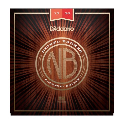 Gauges: 13-56 Introducing D'Addario's new premium Nickel Bronze acoustic guitar strings. While many strings add color to a guitar's tone, these strings simply highlight a guitar's inner character, allowing your instrument's natural frequencies to truly shine. Nickel Bronze provides a guitar with unrivaled clarity, resonance and projection, as well as outstanding balance and harmonically rich overtones. Since this uncoated set also features D'Addario's proprietary NY Steel core, players will also enjoy improved tuning stability and higher break resistance.