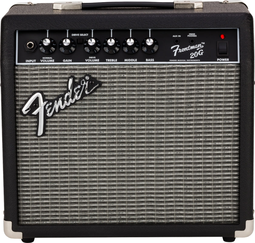 Le 20G présente un design intuitif simple que tout le monde, des débutants aux pros, comprendra immédiatement. Il comprend un canal clair avec un volume et trois boutons d'égalisation pour une flexibilité sonore, plus un canal Drive séparé commutable avec son propre volume. Il est également doté d'une entrée auxiliaire 1/8" pour accompagner vos morceaux préférés et d'une prise casque pour une pratique silencieuse. Le Frontman délivre également 20 watts dans un haut-parleur 8" Special Design qui offre de superbes sonorités lorsque vous vous exercez ou jouez avec vos amis.