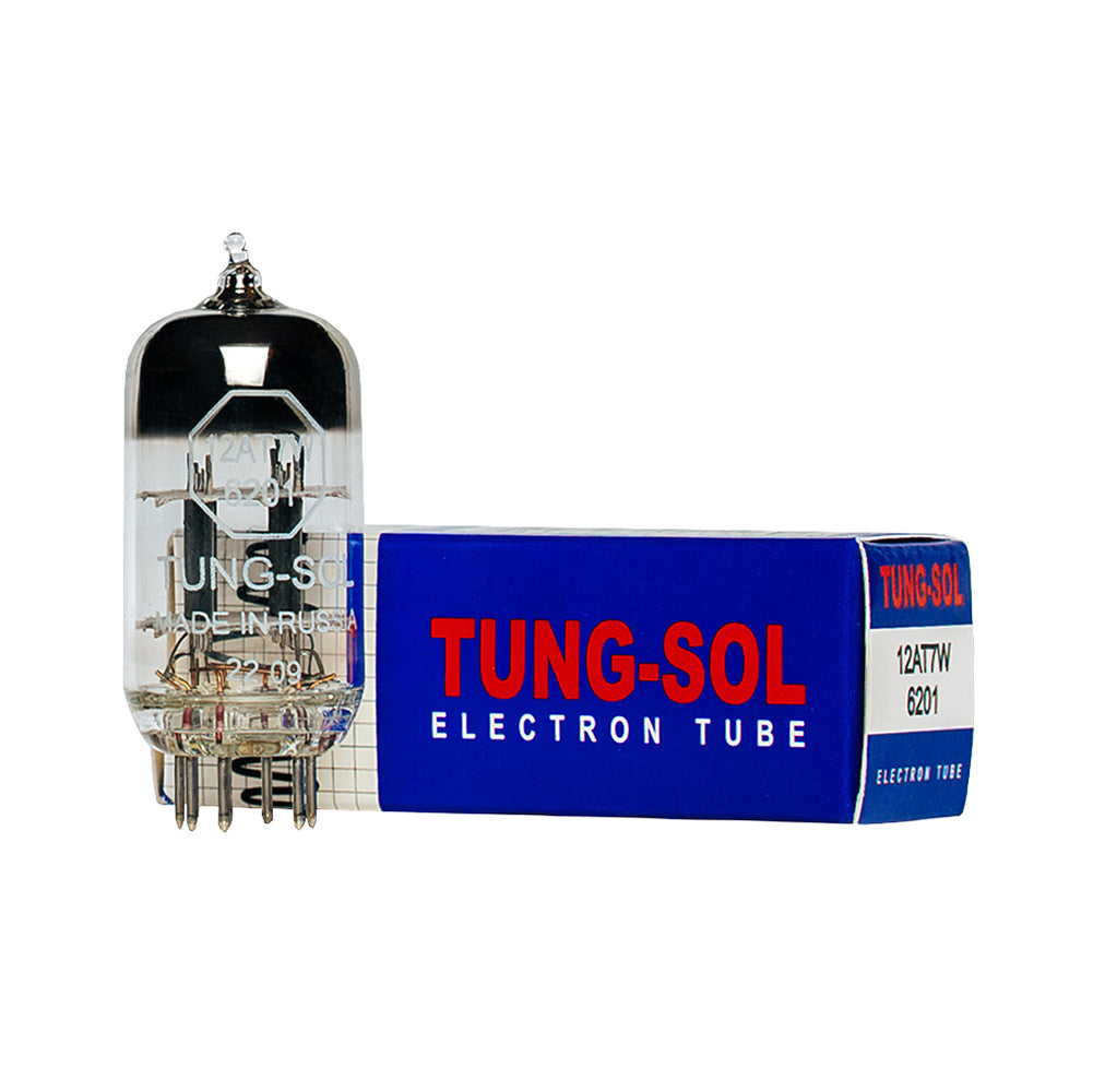 La lampe à vide 12AT7W/6201 de Tung-Sol est une double triode miniature à cathodes équipotentielles, conçue pour amplifier la tension basse fréquence dans les appareils de radiotechnique.