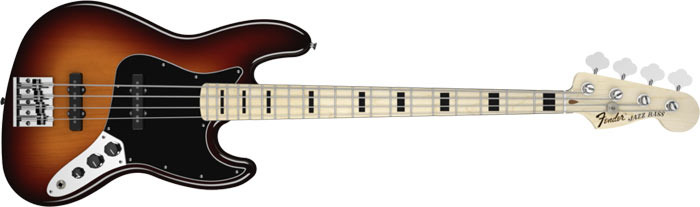 Corps en aulne, manche érable 1 pièce, avec profil en "C", radius 9.5"(241mm), touche érable, 20 frettes medium Jumbo, 2 micros Vintage Jazz Bass "simple bobinage ", 2 volume et une tonalité, chevalet Leo Quan Badass® II, mécanique Vintage ‘70s "Fender", accastillage chromé, livrée en housse Deluxe Gig Bag.