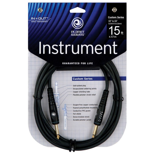 Planet Waves Custom Series cables utilize ultra-pure, oxygen-free copper conductors for low capacitance and pure tone. Encapsulated and impenetrable soldering points with double-molded strain relief provide maximum durability and worry-free reliability. Two layers of shielding provide 100% coverage for superior insulation and noise rejection, making this the ultimate, high-performance cable.