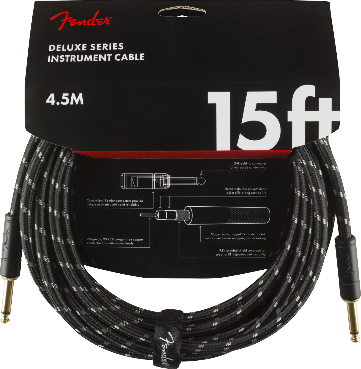 Fender - Câble, droit/droit, 4,57 m (15 pi), noir tweed 990820083