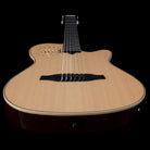Notre modèle phare, la Godin Multiac, s'est imposée comme la guitare Godin la plus populaire et la plus performante depuis des décennies. Aujourd'hui, cette guitare moderne à cordes nylon est de retour, plus performante que jamais, dans une version inédite : la Godin Multiac Nylon Deluxe. Nous avons conservé tous les atouts qui ont fait la singularité de notre Multiac et y avons intégré un nouveau préampli LR Baggs, conçu sur mesure selon nos spécifications. Ce système innovant dispose de deux sources sonores combinables : six micros HEX individuels et un micro Lyric. Le préampli de la Multiac Nylon Deluxe est une véritable prouesse technique qui sublime les qualités acoustiques naturelles de la guitare, offrant un contrôle précis du son et du volume grâce à un égaliseur trois bandes, un potentiomètre de volume général, un inverseur de phase, un potentiomètre de saturation et un potentiomètre de volume pour le micro Lyric. Cependant, c'est le micro Lyric, au cœur de la Multiac Nylon Deluxe, qui séduira les guitaristes de flamenco, ou de tout style de musique expressif et percussif. Grâce à son positionnement optimal sous la table d'harmonie, le Lyric capte à la fois le son naturel de la guitare et chaque frappe rythmique sur la table, permettant au musicien d'exprimer toute la subtilité de sa technique percussive. Les six capteurs individuels intégrés au chevalet captent le son et la vibration de chaque corde, offrant un son clair, défini et dynamique quelle que soit la position de jeu sur le manche. La possibilité de mixer ces deux sources sonores – et de les corriger grâce au préampli dédié – fait de la Multiac Nylon Deluxe une guitare extrêmement polyvalente, appréciée des guitaristes comme du public, sur tous les lieux de concert. Sa caisse en acajou massif chambré garantit une utilisation sans larsen, aussi bien en studio que sur scène. Une table en épicéa, un manche en acajou, une touche et un chevalet en Richlite complètent cette guitare impressionnante qui inspirera dès les premières notes.