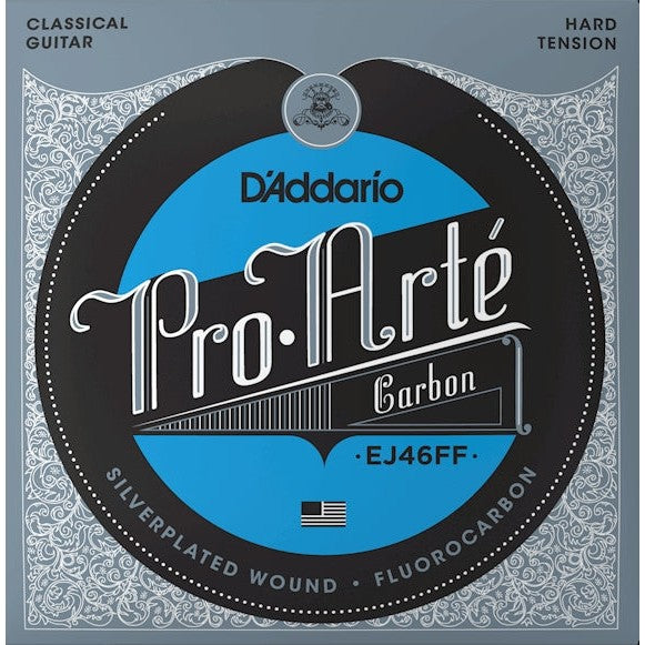 EJ46FF, hard tension, features Pro-Arté Carbon trebles and Dynacore basses for unsurpassed superior intonation with the perfect blend of tone, brightness, and projection. Experience the vibrant, projecting & contemporary tone of D’Addario’s Pro-Arté Carbon strings. Designed to the exacting specifications of our Pro-Arté nylon trebles, our fluorocarbon strings deliver unmatched superior intonation, a responsive attack and modern projecting tone. Paired with the bold and powerful Dynacore basses, Pro-Arté Carbons offer the ideal combination of tension and tone for today’s classical player.
