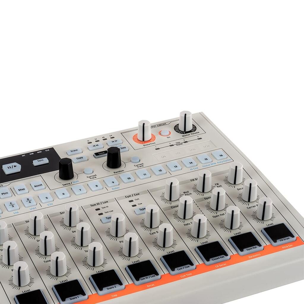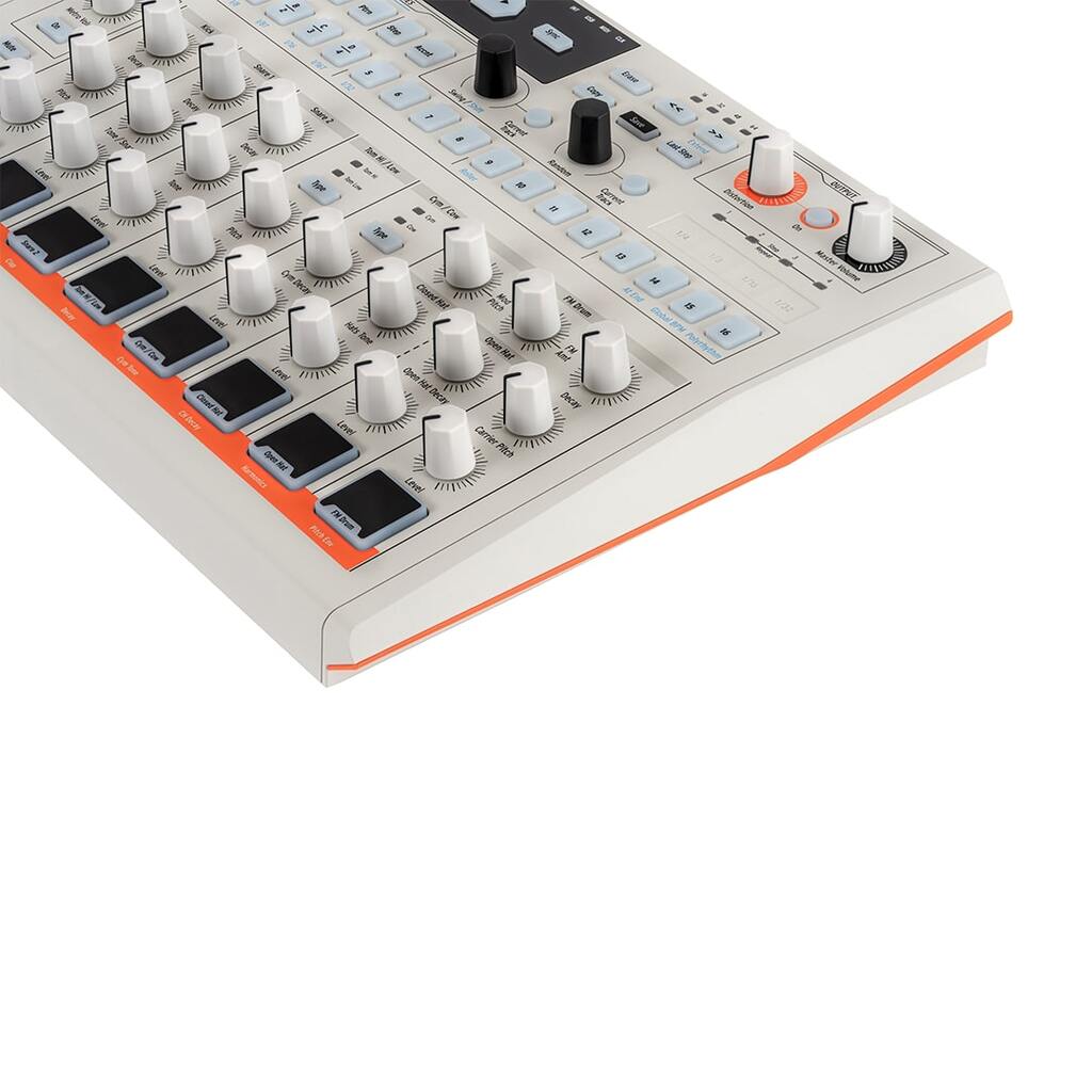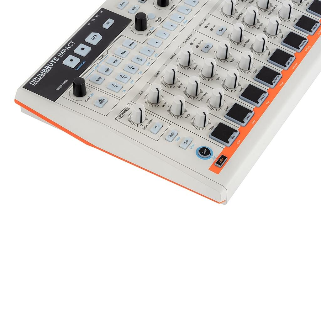Le DrumBrute Impact 1984 offre le même impact mais remanié avec des détails emblématiques. Il combine des sons de percussion analogiques classiques avec un séquenceur polyrythmique de 64 pas et des accessoires modernes comme une voix FM courageuse, une distorsion intégrée et une variation de couleur audacieuse par voix dans une machine à rythmes compacte et instantanément satisfaisante. Parfait pour la production en studio et les performances en direct, le DrumBrute Impact 1984 permet aux musiciens exigeants de créer, personnaliser et contrôler facilement une riche palette de rythmes et de rythmes - de ses pads résistants à ses sons rauques et entraînants. SON : Ses sons agressifs et modifiables ont une attitude sérieuse, donnant à vos morceaux une puissance nerveuse. Chaque voix de batterie est améliorée par la fonction programmable « Color », ajoutant une touche unique à chaque rythme. Cela vous permet de pousser chaque son pour un impact maximal, ajoutant une énergie dynamique et de la créativité. LOOK REDESSINÉ : Le DrumBrute Impact 1984 présente un design audacieux et nostalgique qui combine une esthétique d'inspiration vintage avec une fonctionnalité moderne. Sa couleur blanc cassé éclatante en fait un ajout remarquable à toute configuration. PERFORMANCE : DrumBrute Impact est conçu pour les performances en direct, offrant un contrôle instantané sur tous les paramètres sonores ainsi que des fonctionnalités telles que Step Repeat, Pattern Looper et les groupes Mute/Solo pour des rythmes évolutifs et une expressivité améliorée. Ses pads ultra-sensibles s'adressent également aux batteurs au doigt qui aiment jouer en temps réel. CONNECTIVITÉ : Avec quatre sorties audio séparées, DrumBrute Impact 1984 est une centrale de connectivité. Il se synchronise de manière transparente avec des configurations telles que l'Eurorack, les équipements Roland vintage, les Korg Volcas, les DAW et les appareils MIDI.