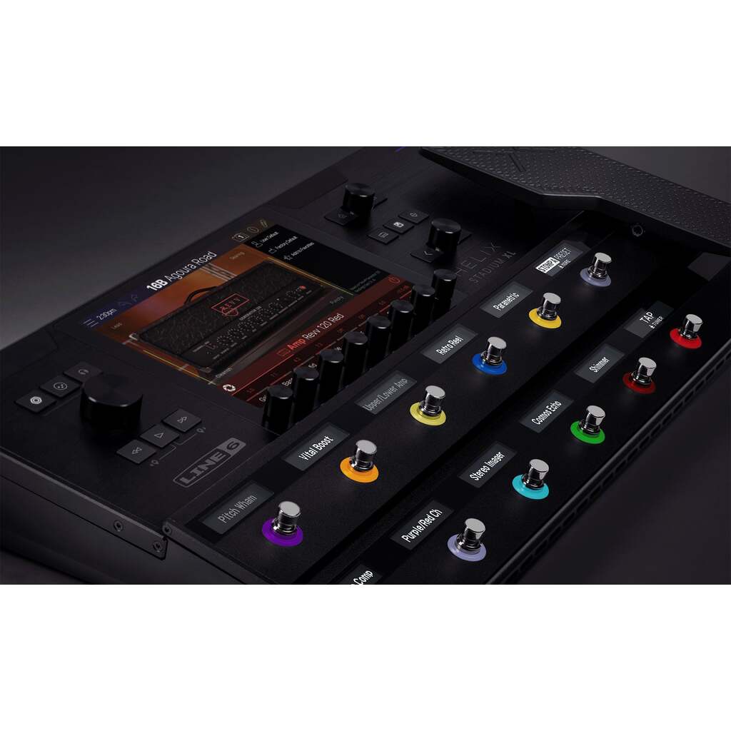 Helix Stadium XL Floor, le processeur de guitare le plus complet et le plus intégré jamais créé par Line 6. L'ensemble du matériel extensif comprend un écran tactile haute résolution de 8 po, 12 bandes de gribouillis OLED à fort contraste et une pédale d'expression précise avec commuateur au pied. Il offre une connectivité étendue, y compris diverses entrées et sorties audio analogiques et numériques.