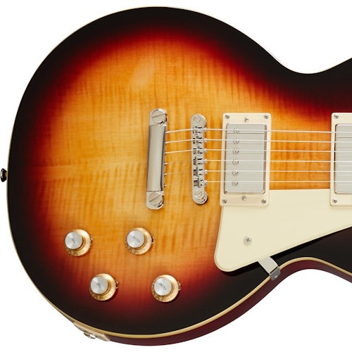 Les modèles Les Paul Standard des années 60 de la nouvelle collection Inspired by Gibson d'Epiphone recréent le son des Les Paul des années 60. Elles sont dotées d'un corps classique en acajou avec une table en érable, d'accordeurs Grover® et sont alimentées par des humbuckers ProBucker™ avec électronique CTS.