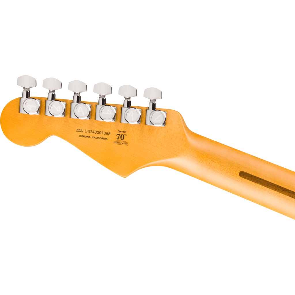 Sous le capot, une paire de micros Ultra II Noiseless™ Hot Strat® associés à un humbucker Haymaker™ délivrent tout, des sons clairs cristallins doux aux sons principaux brûlants, le tout sans la moindre trace de bourdonnement. Notre commutateur breveté S-1™ divise intelligemment le Haymaker pour encore plus de variété tonale. Les autres caractéristiques prêtes pour la route comprennent un vibrato synchronisé American Ultra à 2 points avec bras pop-in, des pontets en acier inoxydable poli, un bloc en acier laminé à froid, des mécaniques de verrouillage de luxe, des boutons doux au toucher et un pickguard en aluminium anodisé 1 pli.