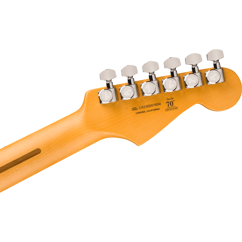 Sous le capot, un trio de micros Ultra II Noiseless™ Vintage Strat® délivre tout, des sons clairs cristallins doux aux sons de plomb brûlants, le tout sans la moindre trace de bourdonnement. Notre commutateur breveté S-1™ déverrouille intelligemment des configurations de micros supplémentaires pour encore plus de variété tonale. Les autres caractéristiques prêtes pour la route comprennent un vibrato synchronisé American Ultra à 2 points avec bras pop-in, des pontets en acier inoxydable poli, un bloc en acier laminé à froid, des mécaniques de verrouillage de luxe, des boutons doux au toucher et un pickguard en aluminium anodisé 1 pli.