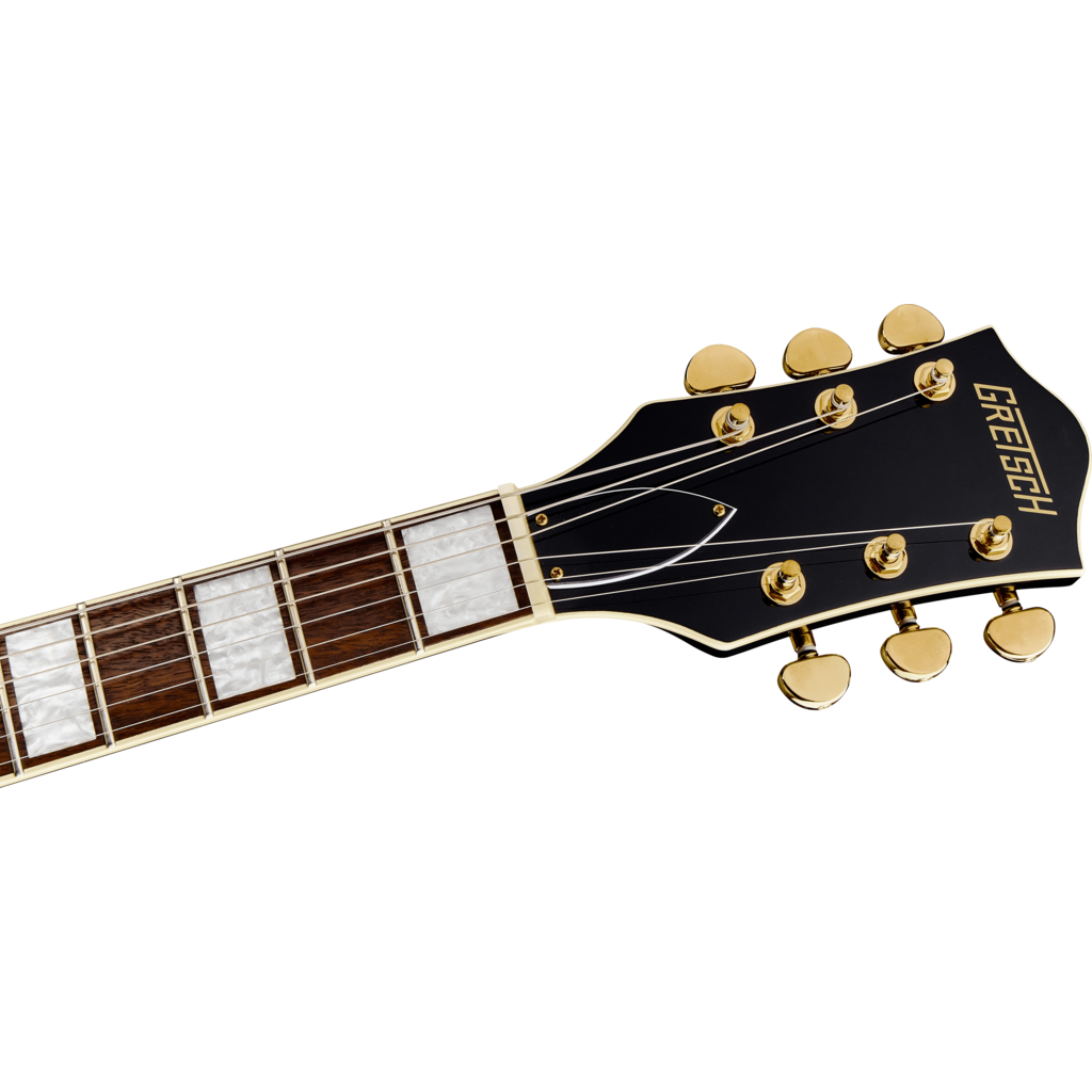 La guitare G2420TG Streamliner Hollow Body Single-Cut avec Bigsby® en édition limitée est conçue pour le guitariste moderne qui aspire à quelque chose qui sort de la norme. Dotée d'un accastillage doré brillant, de boutons de commande G-Arrow en métal et d'incrustations Big Block en nacre, la sonorité moderne de la G2420TG, son électronique mise à jour et son style authentiquement élégant créent la dernière itération de That Great Gretsch® Sound!™