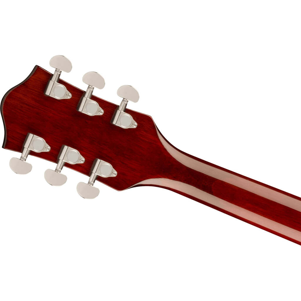 The G2655 Center Block Jr. features a smaller arched maple body with an all-new center block design under the hood. This new center block is designed to balance lightweight comfort with a full, rich sound and increased presence; resulting in improved attack and sustain, and excellent feedback rejection, in a comfortable package that won't weigh you down.
