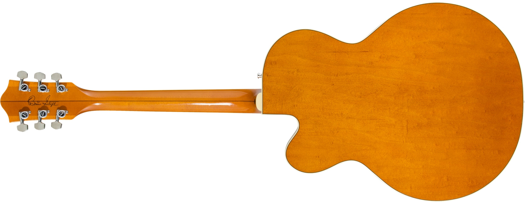Cependant, sous son apparence vintage, la Smoke est une véritable bête de somme avec des caractéristiques accumulées au cours de la carrière prolifique de Brian. Les spécifications des vétérans de la scène comprennent un corps creux à simple pan avec une table en érable laminé arquée, des barrettes de 1959 et des trous F surdimensionnés pour une meilleure projection sonore. Le manche en érable est doté d'une touche en ébène à rayon composé de 9,5 à 12 pouces et d'une forme de manche en "V" vintage pour des accords confortables ou des leads fulgurants. Les bords roulés de la touche et du corps s'associent à la finition semi-brillante pour créer une sensation de rodage inégalée que l'on ne trouve que sur les précieuses G6120 des années 1950.