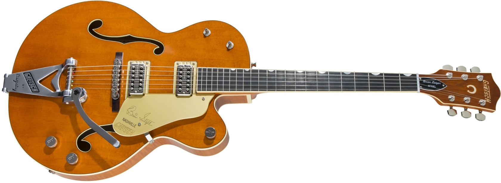 En hommage à une légende du rock'n'roll, la G6120T-BSSMK Brian Setzer Signature Nashville® Hollow Body '59 "Smoke" with Bigsby® est une reconstitution de la principale guitare de scène de Brian depuis qu'il a retiré la célèbre "Stray Cat". Hommage minutieux à l'une des guitares les plus précieuses de Brian, la Smoke offre une ambiance vintage 59 avec des performances exceptionnelles.