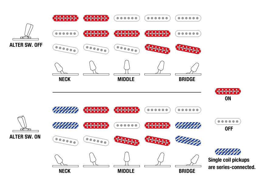 Le dyna-MIX 8 offre huit variations sonores et peut passer du mode humbucker au mode single coil d'une simple pression sur le mini interrupteur. Il simule même un son humbucking à partir de la combinaison de deux micros à simple bobinage.