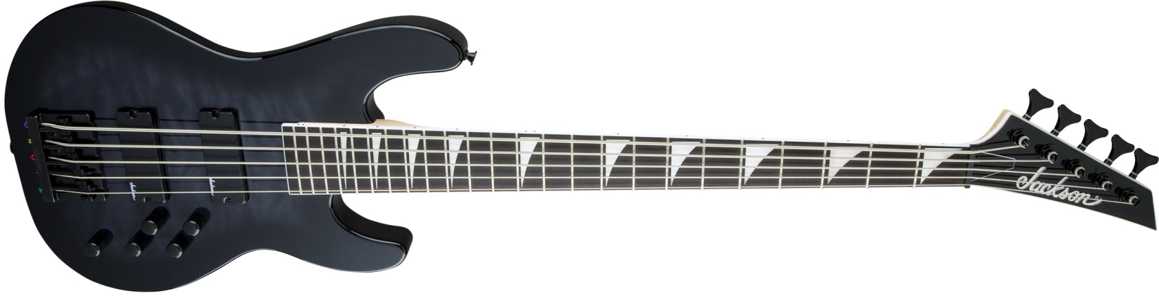 Une basse du tonnerre chargée de vibrations et de valeur, la JS3VQ est disponible dans une finition saisissante Cherry Burst, Transparent Black Burst ou Transparent Red Burst avec du matériel noir et une tête Jackson pointue à 5 lignes.
