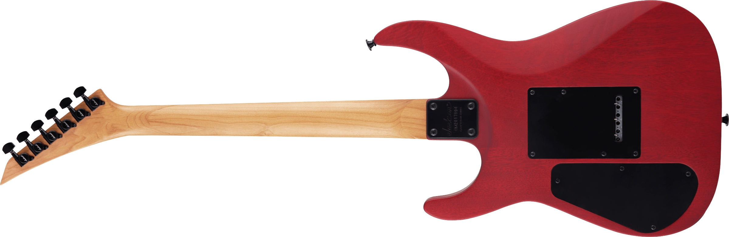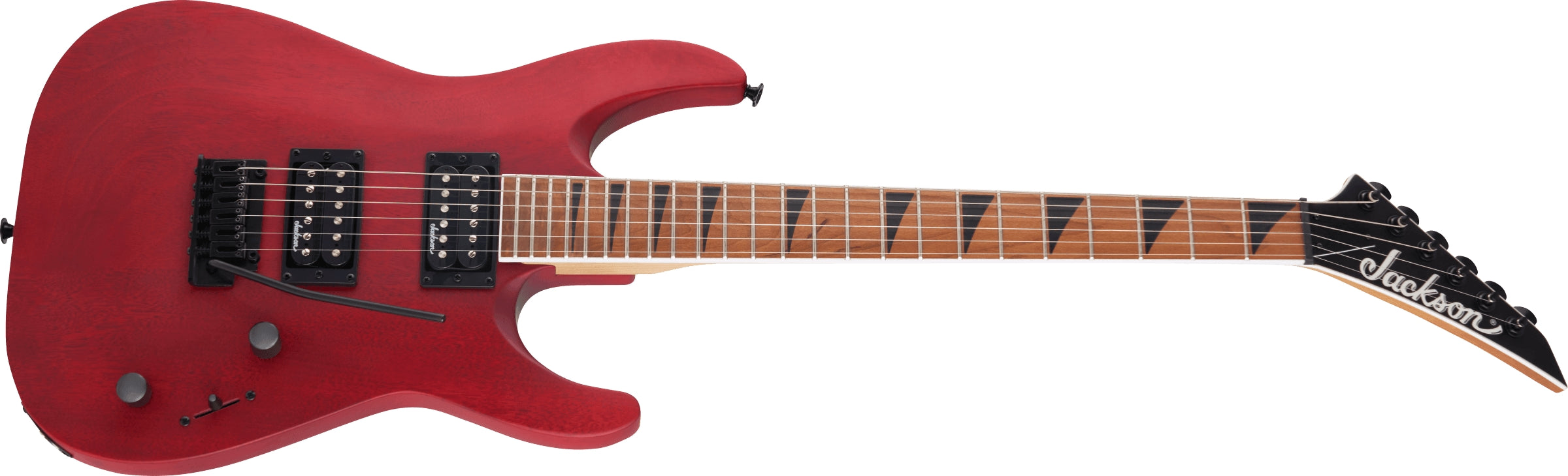 Autres caractéristiques : deux micros Jackson à haut rendement pour le humbucker, avec aimants en céramique et commutation à trois voies des lames de micros, commandes de volume et de tonalité uniques, pont à trémolo synchronisé, boutons de sangle standard et accordeurs moulés sous pression.