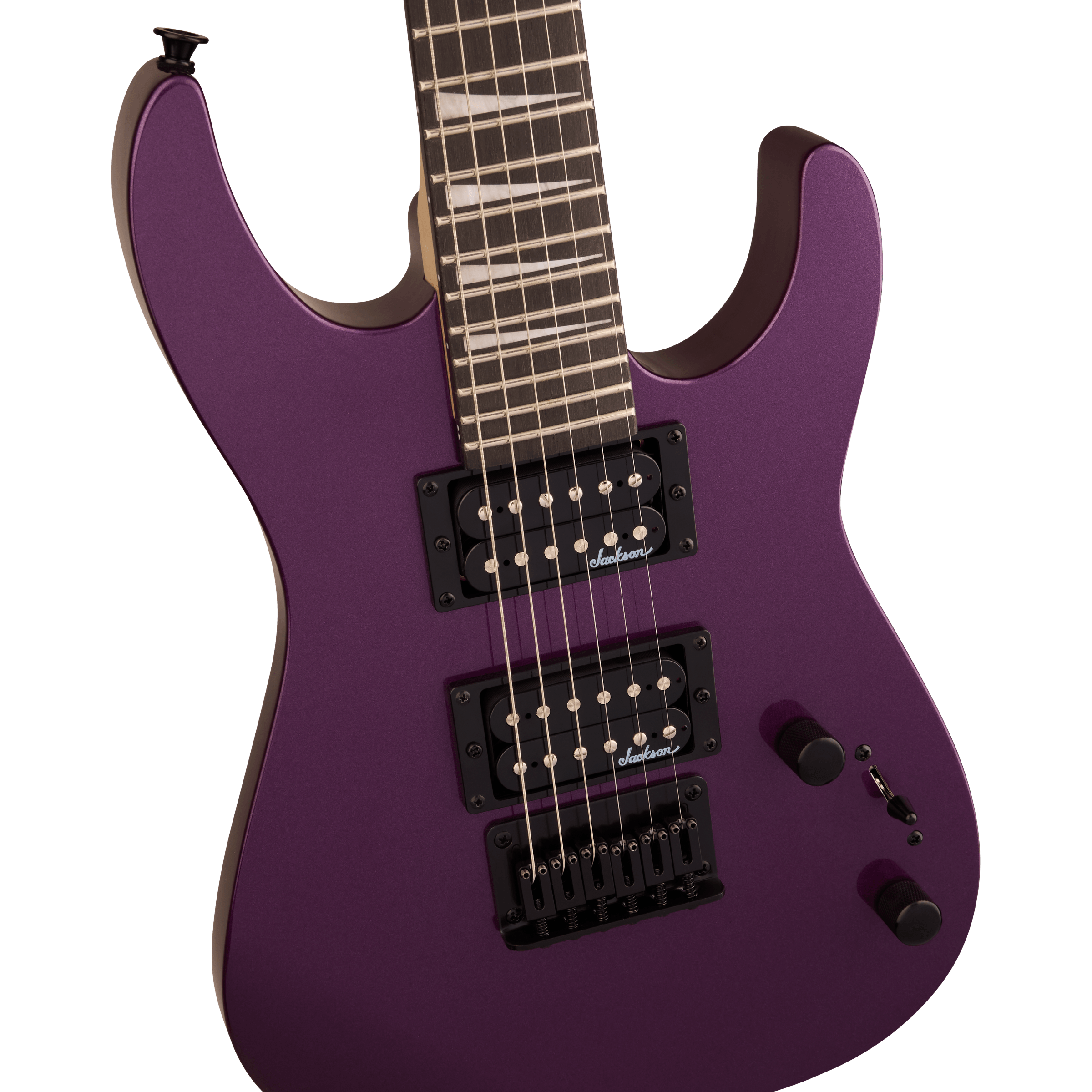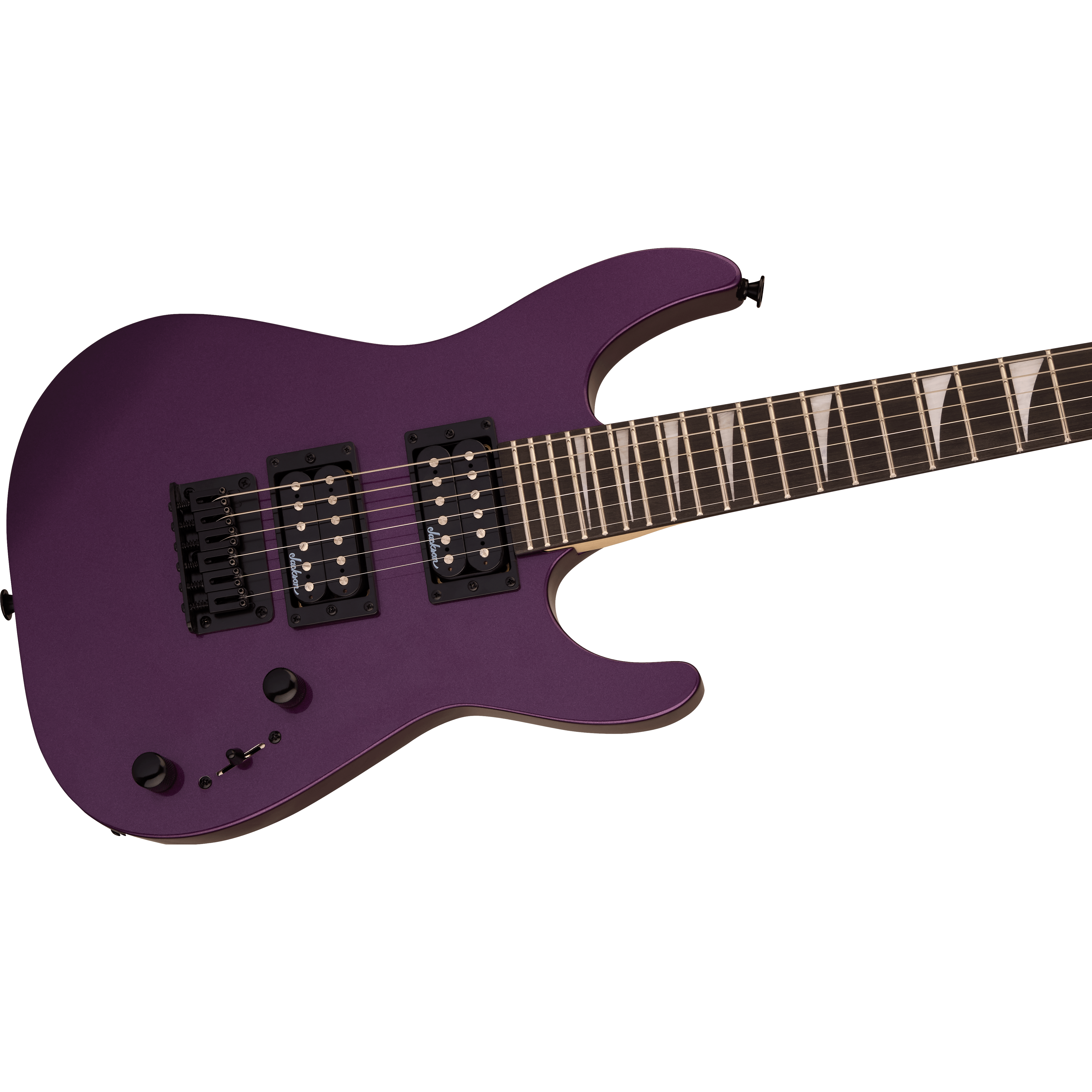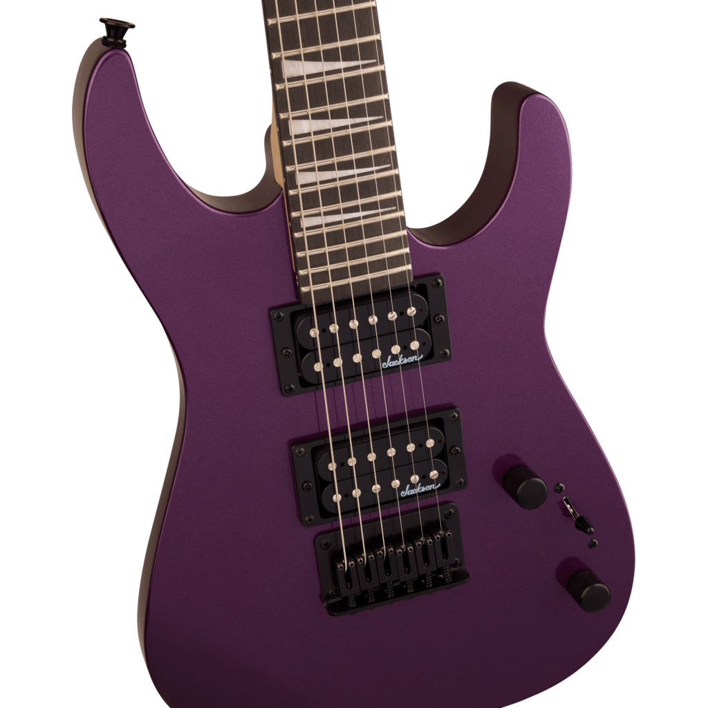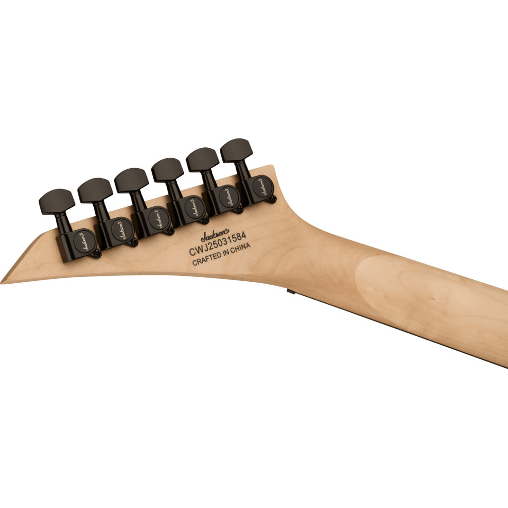 Une paire de micros humbucker Jackson à haut niveau de sortie et aimants en céramique délivre un son clair et ample. La position manche offre des aigus brillants, tandis que le chevalet apporte une distorsion crunchy. Son timbre polyvalent peut être modelé grâce à un sélecteur à trois positions et des commandes de volume et de tonalité uniques, tandis qu'un chevalet rigide à cordes traversantes avec pontets en bloc améliore l'intonation et le sustain.