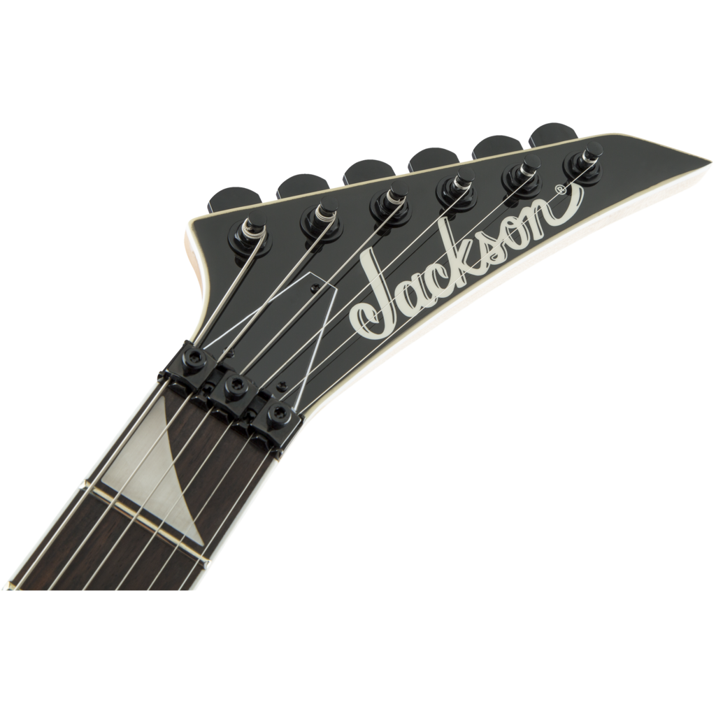 Les autres caractéristiques comprennent deux micros humbucker Jackson à haut rendement avec aimants en céramique et commutation à bascule à trois voies, un chevalet vibrato à double verrouillage Floyd Rose® de marque Jackson, des boutons de sangle standard et des mécaniques moulées sous pression scellées.