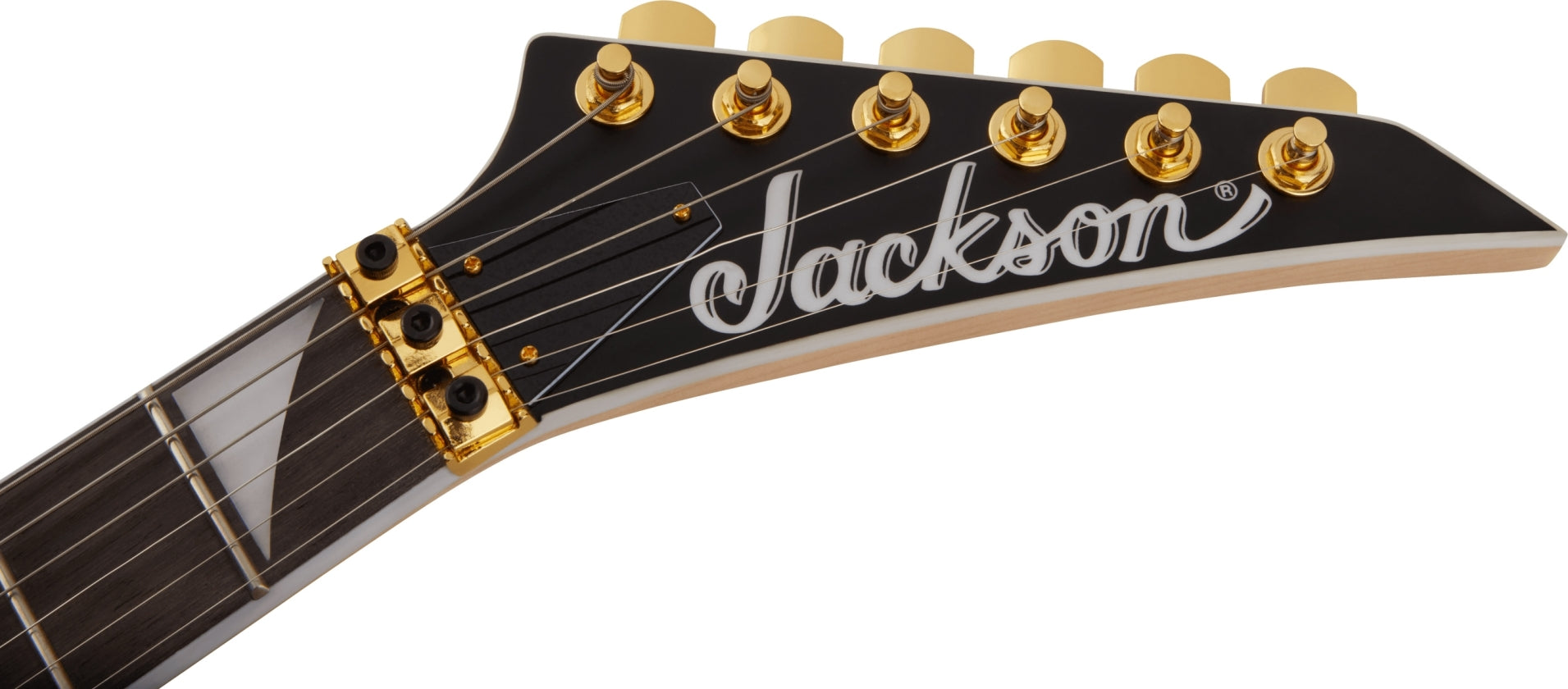 Parmi les autres caractéristiques, citons les deux micros à ronronnement Jackson à haut rendement avec des aimants en céramique pour le son volcanique, un commutateur à bascule à trois voies, des commandes de volume et de tonalité uniques et un système de pont à trémolo Floyd Rose® à double verrouillage de marque Jackson pour une réponse dynamique et une stabilité d'accord fiable.