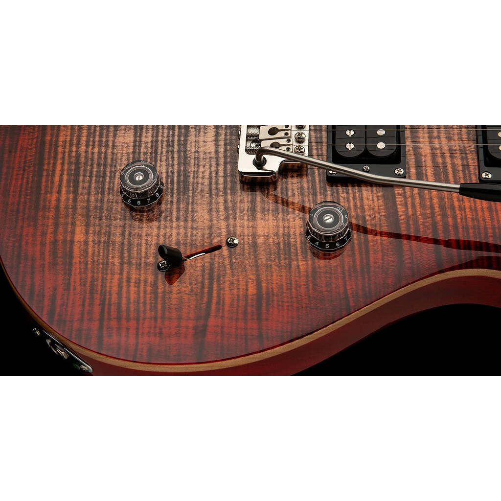 - Dotée d'une table en érable, d'un dos en acajou, d'un manche large et fin en érable, d'une touche en palissandre avec incrustations d'oiseaux et du trémolo breveté de PRS, la SE Custom 24 de PRS présente de nombreuses caractéristiques familières. Ses sons polyvalents proviennent des micros « S » 85/15 associés à une commande de volume, une commande de tonalité « push/pull » et un sélecteur de micro à lame à 3 voies. Désormais dotée de boutons ergonomiques en forme d'abat-jour et du design de l'embout de commutation de PRS à poignée plate, la SE Custom 24 de PRS est plus performante que jamais.