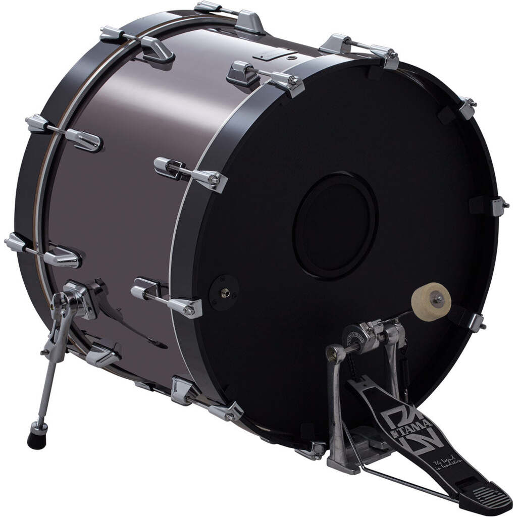 L'électronique avancée de Roland pour le déclenchement des coups de pied, installée dans une coque de grosse caisse acoustique de 22 pouces
