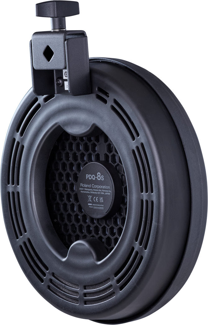 Le pad de caisse claire PDQ-8S est doté d'un insert en caoutchouc alvéolé absorbant le bruit recouvert d'une peau en maille. Des évents soigneusement conçus sur la face inférieure de la surface de jeu permettent à la pression de l'air de se dissiper, réduisant encore davantage le bruit. Et grâce au revêtement en caoutchouc souple, les rimshots sont également silencieux. La jouabilité reste exceptionnelle malgré toutes ces fonctionnalités avancées de réduction du bruit, avec la sensation de frappe exceptionnelle et le rebond naturel que vous attendez d'un pad V-Drums haut de gamme.