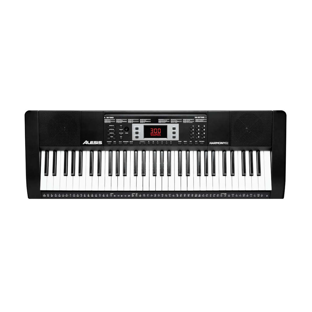 - The Alesis Harmony 61 MK3 keyboard has 61 piano-style keys, built-in speakers, and 300 high-quality built-in sounds covering a wide variety of instruments - pianos, strings, brass, woodwinds, percussion, mallets, guitars, synths, even sound effects! You can layer multiple sounds together in “Dual” mode or split two sounds across the keyboard in “Split” mode. Harmony 61 MK3 also has 40 built-in demo songs and 300 built-in accompaniment rhythms that enable you to instantly create songs in a wide variety of genres. You can even record your own songs using the “Record” mode!