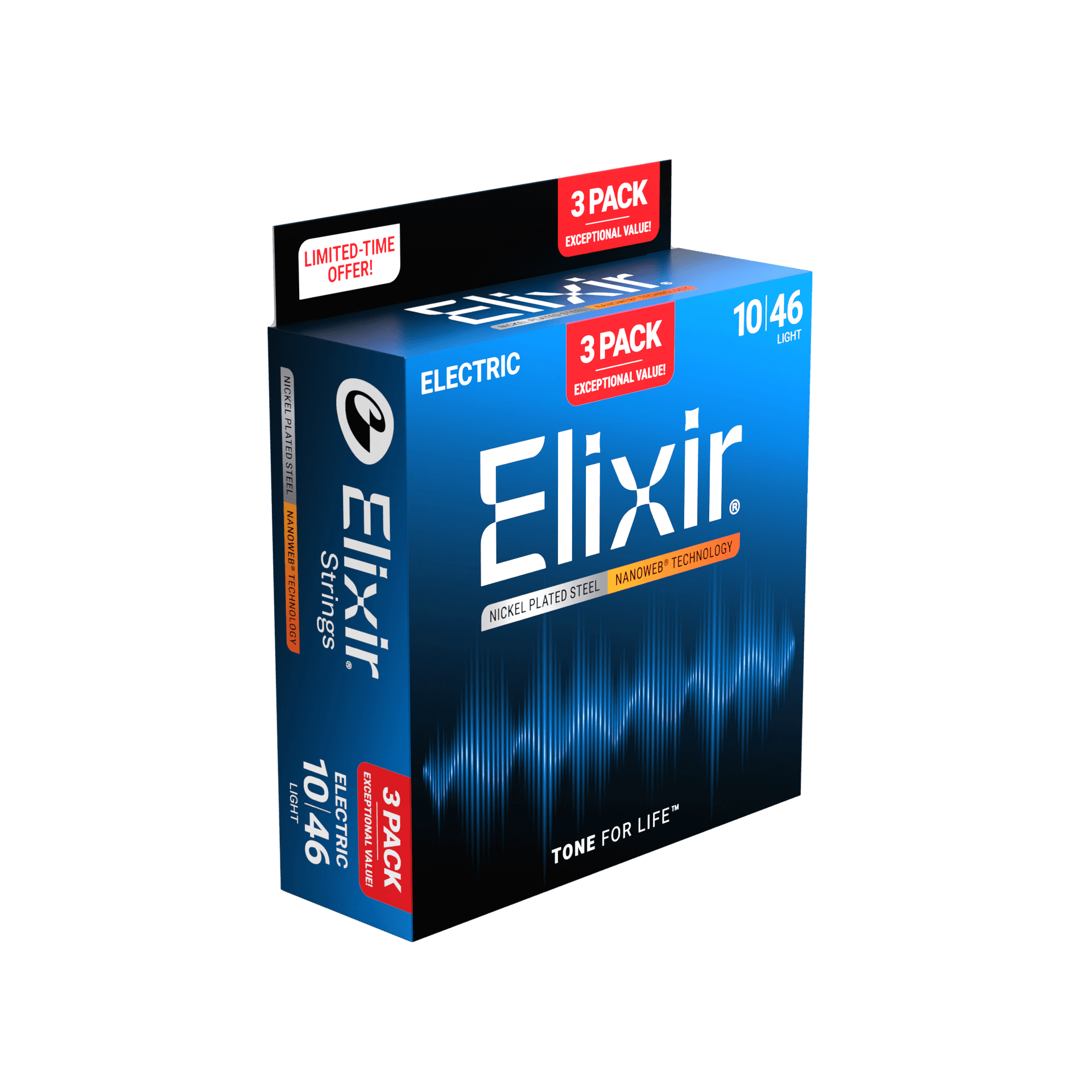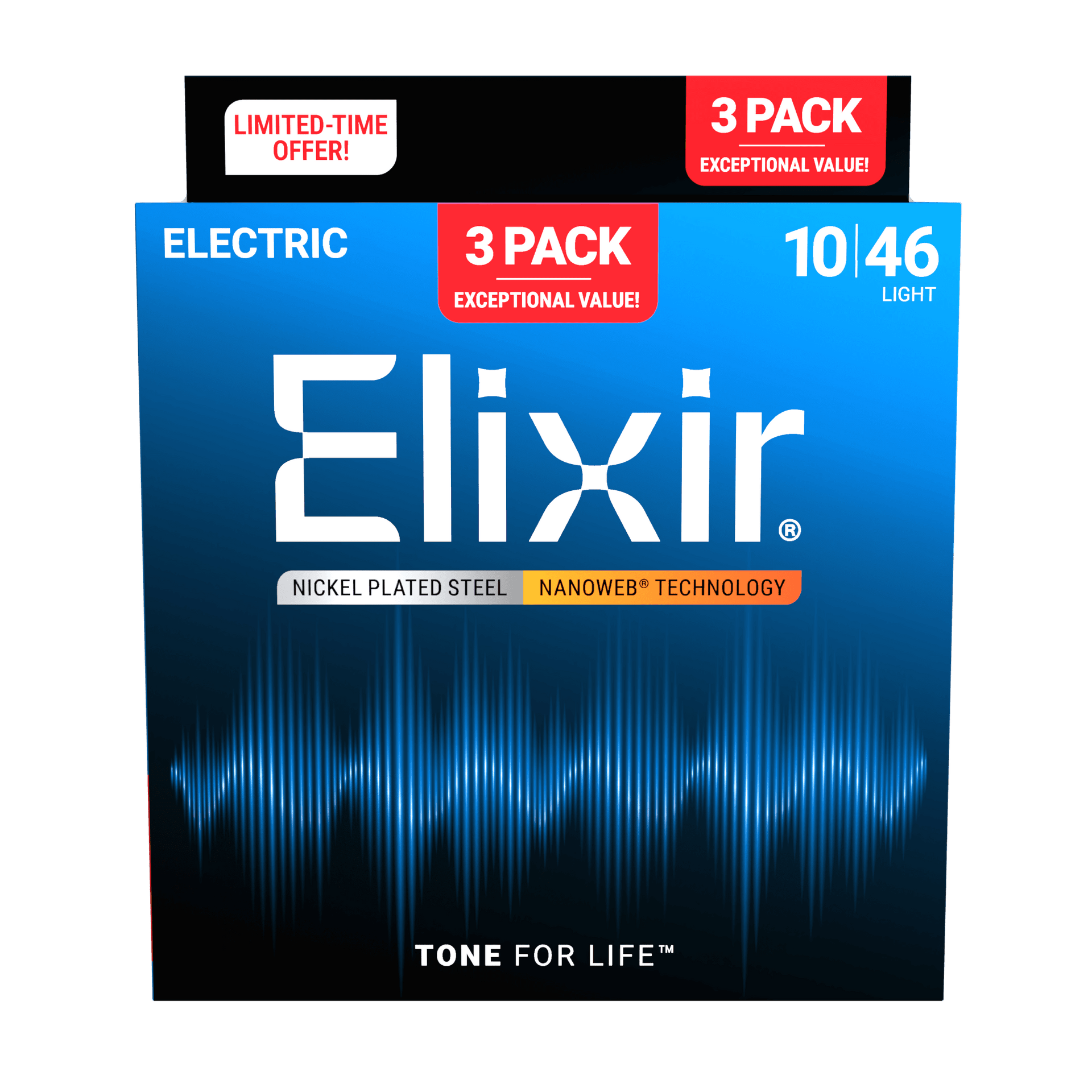 Elixir - Jeu de 3 cordes de guitare électrique en acier nickelé avec technologie NANOWEB 10/46 - 16567 3PK Light