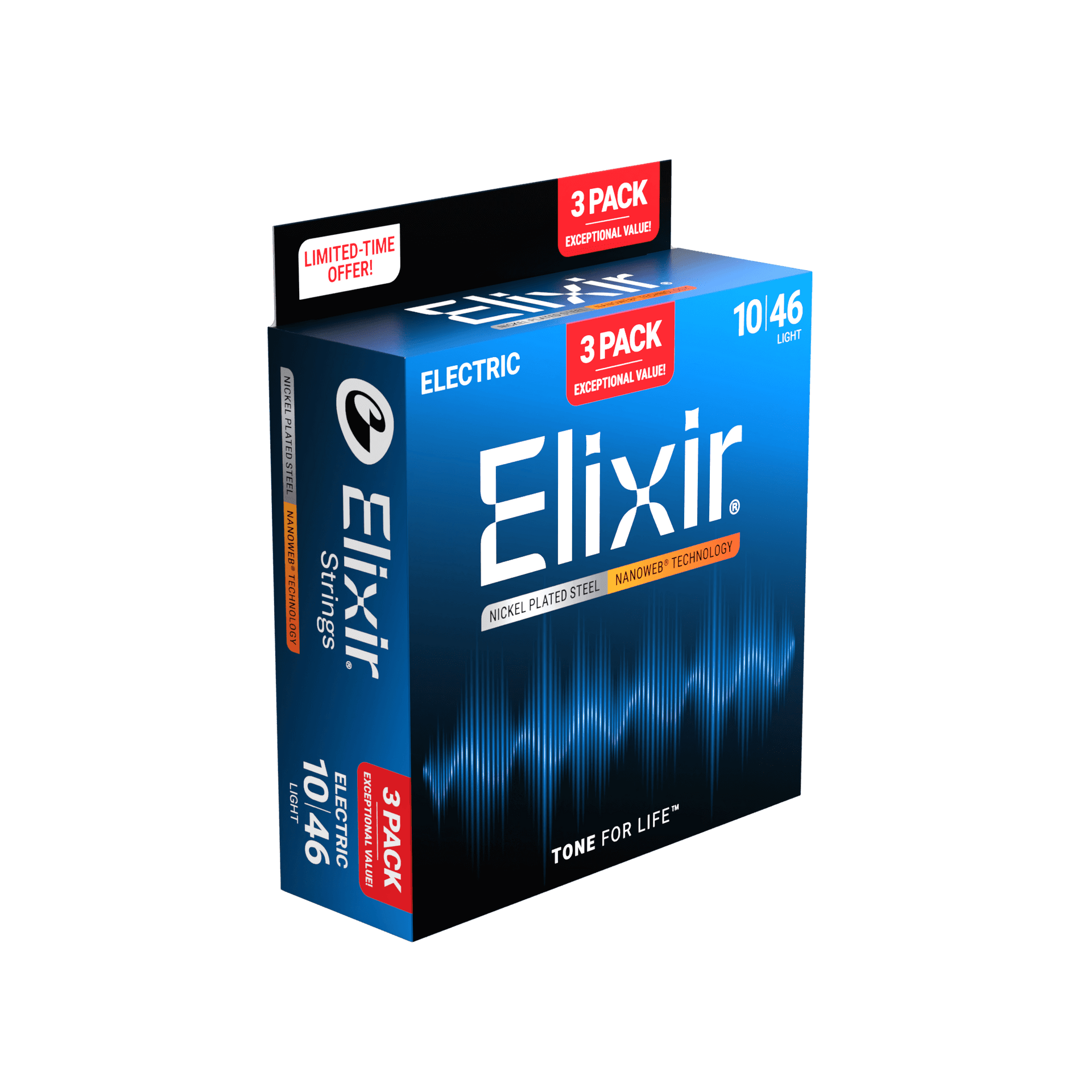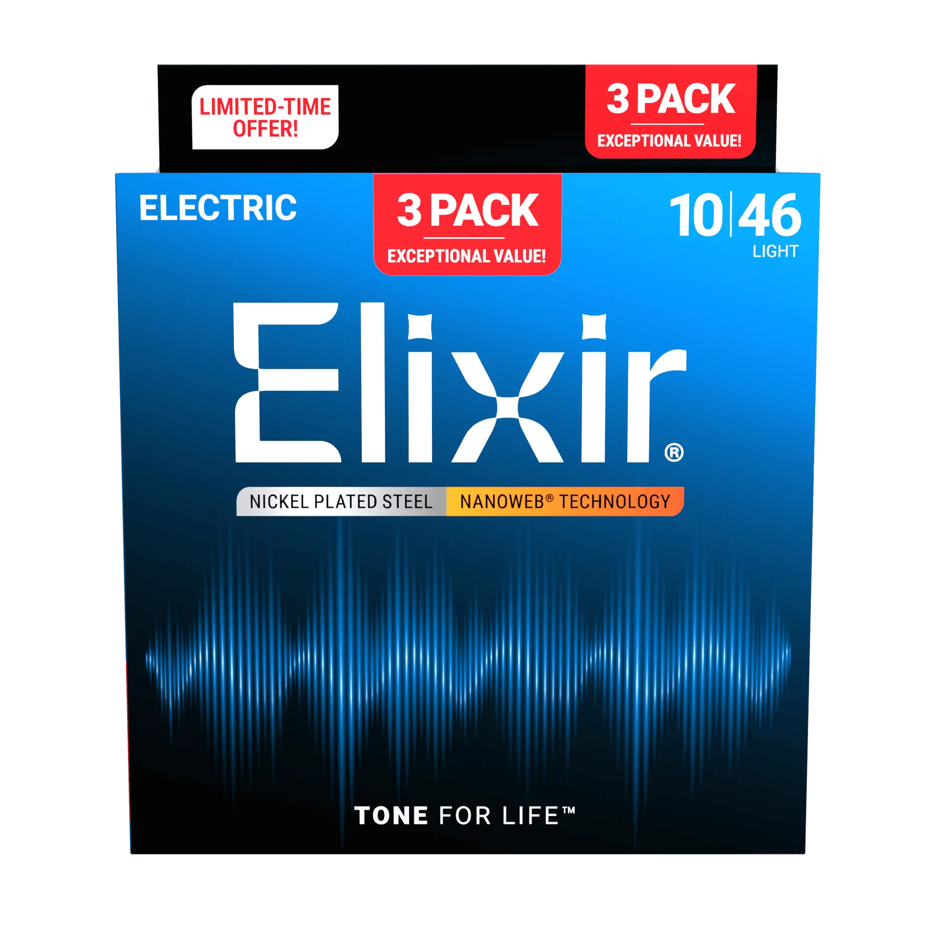Elixir - Jeu de 3 cordes de guitare électrique en acier nickelé avec technologie NANOWEB 10/46 - 16567 3PK Light