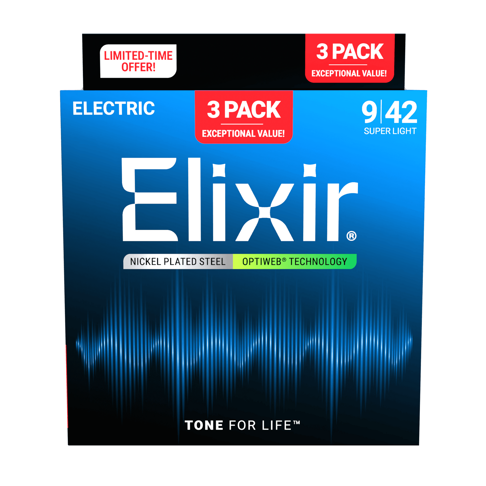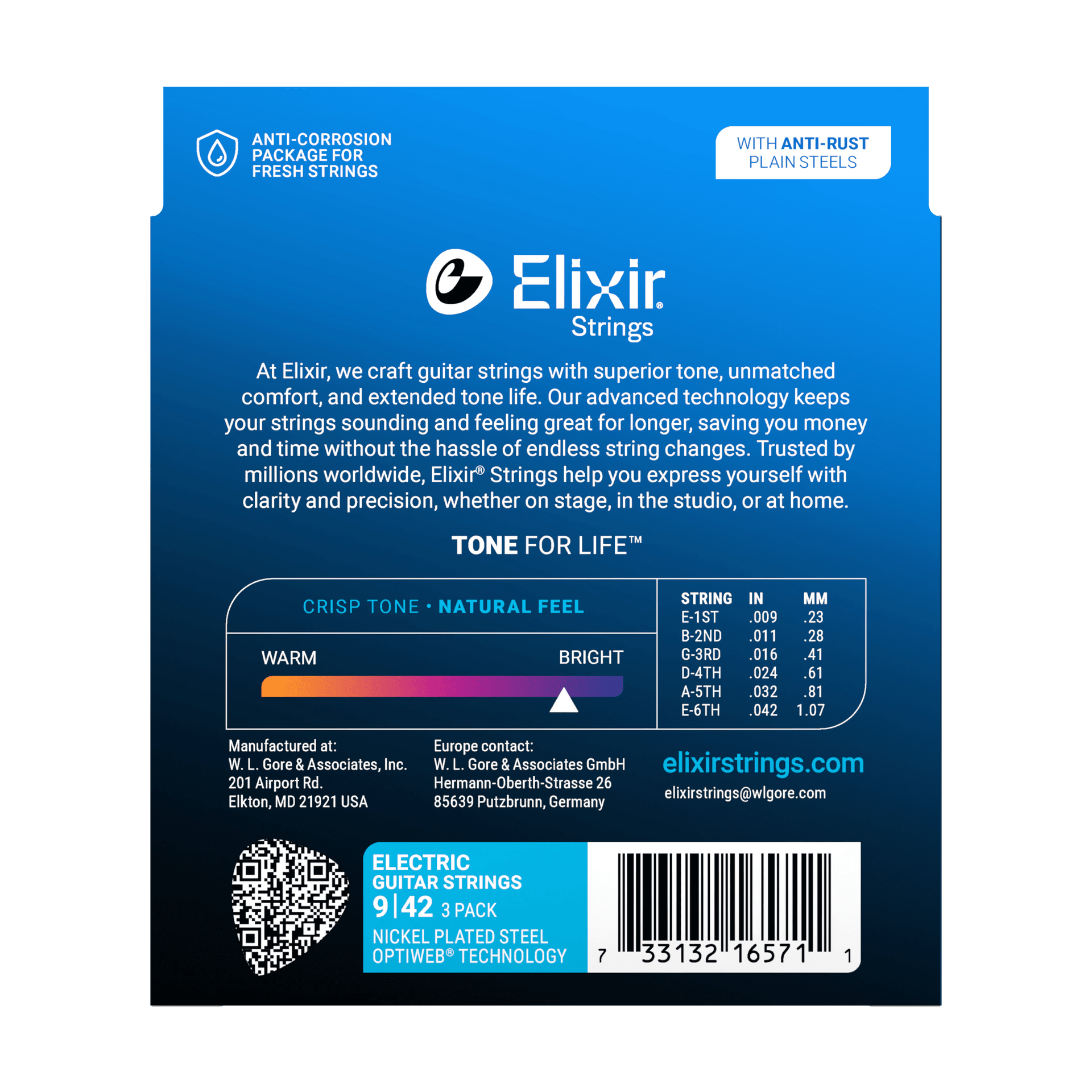 Elixir - Jeu de 3 cordes de guitare électrique en acier nickelé avec technologie OPTIWEB 9/42 - 16571 3PK OPTIWEB Super Light