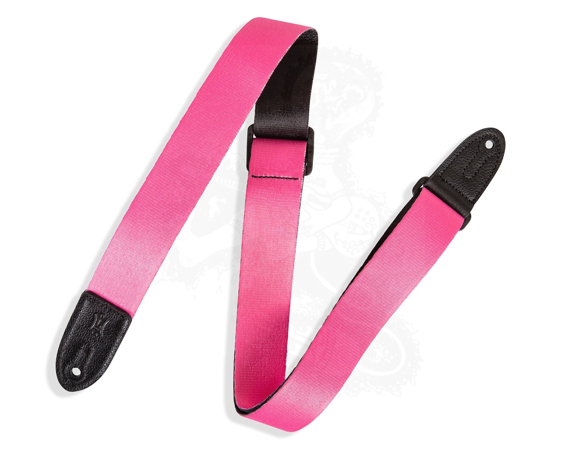 Levy’s 1.5″ kids pink guitar strap with black leather ends.