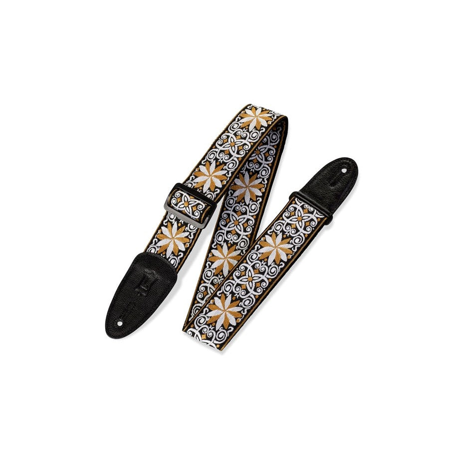 2” woven guitar strap with Floral – Yellow & White motif
