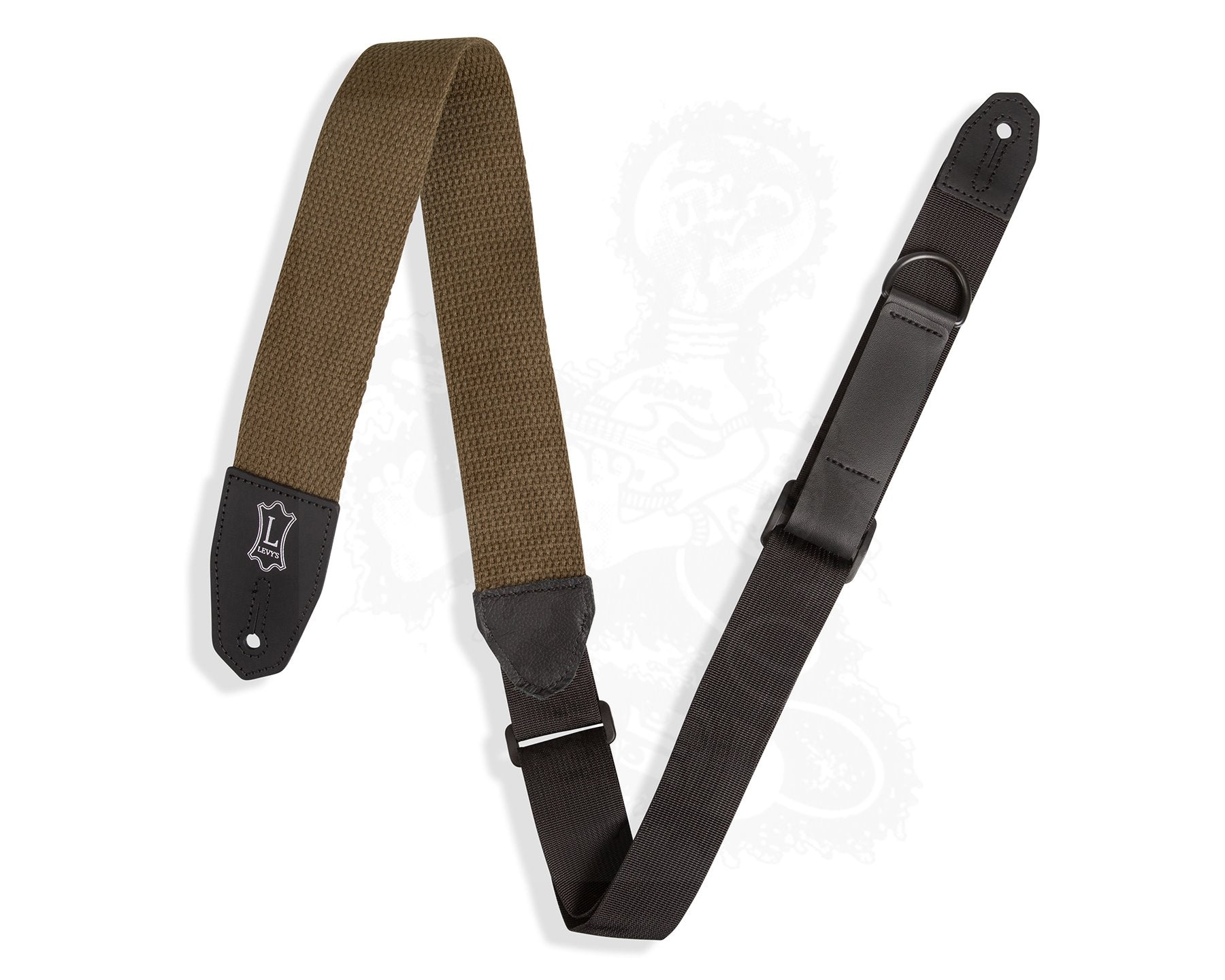 2 inch Right Height Green Cotton Leather Guitar Strap Featuring RipChord Technology™ for Easy Adjust. Black Webbing And Leather With Polyester Webbing Adjustable From 43 to 57 inches.