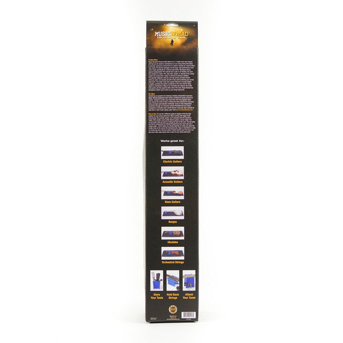 MusicNomad’s Premium Work Mat and 5-in-1 Cradle Cube Neck Support will help you do repairs and maintenance on your string instrument safely and securely. Laying your instrument on a towel or directly on a hard surface may cause it to become damaged, but the large, high-performance Work Mat is made specifically for musical instruments. Developed using a special TPE material that is safe on all finishes, the Work Mat is odorless and contains no rubber, PVC, lead, latex, dioxins, or chloride. The specially designed, textured, anti-slip surface provides traction while you work, and is durable yet soft to help avoid scratching your prized instrument. The Cradle Cube Neck Support features five varying heights and angles, providing the perfect companion to the work mat for doing repairs and maintenance. Made of an innovative gel material, the Cradle Cube gently yet fully supports either side of the neck. MusicNomad has developed a better way to work on your musical instrument.
