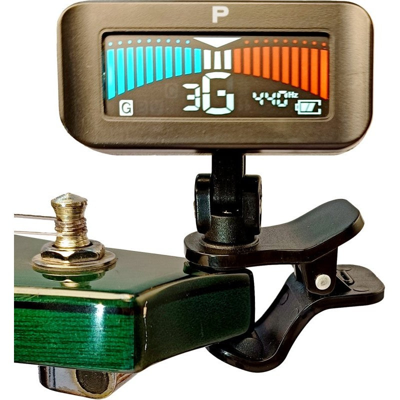 Accordeur chromatique pour guitare, basse, violon et ukulélé.