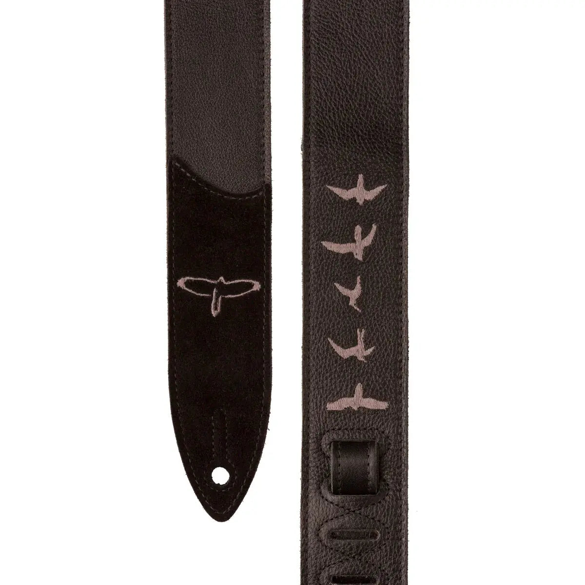 Magnifique sangle en cuir noir premium de 5 cm, ornée d'une broderie oiseau. Une sangle digne de votre guitare PRS. Ses extrémités en cuir sont percées de trous spécialement conçus pour votre guitare PRS. Compatible avec les instruments électriques et acoustiques.