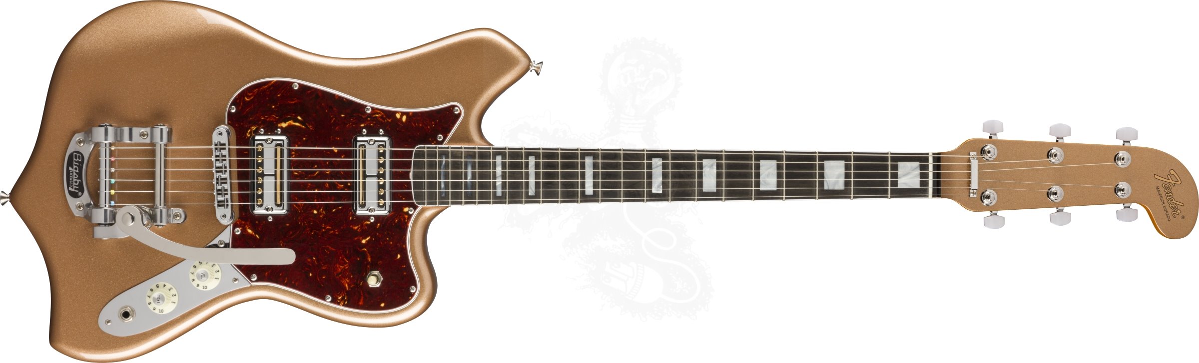 Inspired by the bravado of that original model, the Maverick Dorado kicks up the swagger with a pair of Tim Shaw designed Filter’Tron™ style humbucking pickups, a Bigsby® vibrato and dark ebony fingerboard. Available in Mystic Pine Green, 3-Color Sunburst and Firemist Gold, you’re sure to cause a sensation with your Maverick Dorado.