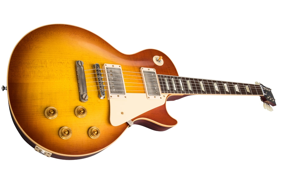 La Les Paul Standard Reissue 1958 présente toutes les méthodes de construction historiques minutieuses des célèbres Reissues 59, avec quelques différences de spécifications historiquement exactes qui lui permettent de se démarquer. Comme les originaux de 1958, elle a des frettes étroites qui permettent de mieux entendre le bois de la touche dans le profil sonore. Elle a également un profil de manche rond et épais pour une sensation de plénitude et un maximum de possibilités de flexion. Et enfin, elle possède une magnifique table en érable massif ; chacune est unique et pleine de caractère. Disponible dans une variété de teintes sunburst classiques.