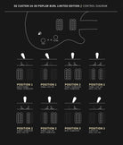 - Commandes : commandes de volume et de tonalité avec commutateur de micro à bascule à 3 positions et deux mini commutateurs à bascule à bobine