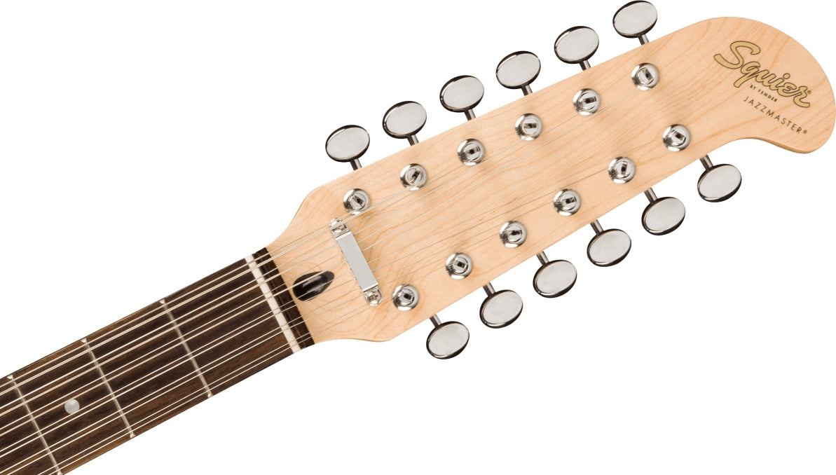 With its iconic offset body shape and rich harmonic character, the Squier® Jazzmaster® XII encourages the most adventurous players to chart a new course of guitar exploration. Featuring dual Fender-Designed alnico single-coil Jazzmaster pickups with 3-way switching and a vintage-inspired “hockey stick” headstock design, this 12-string model doubles down on chime-y tones and timeless style. Other player-friendly details include a graphite-reinforced “C”-shape neck for optimal stability and easy playability, a hybrid string-through-body/top-load bridge for reliable intonation, vintage-style tuning machines for smooth tuning action, and a gloss neck finish for a slick yet confident feel.