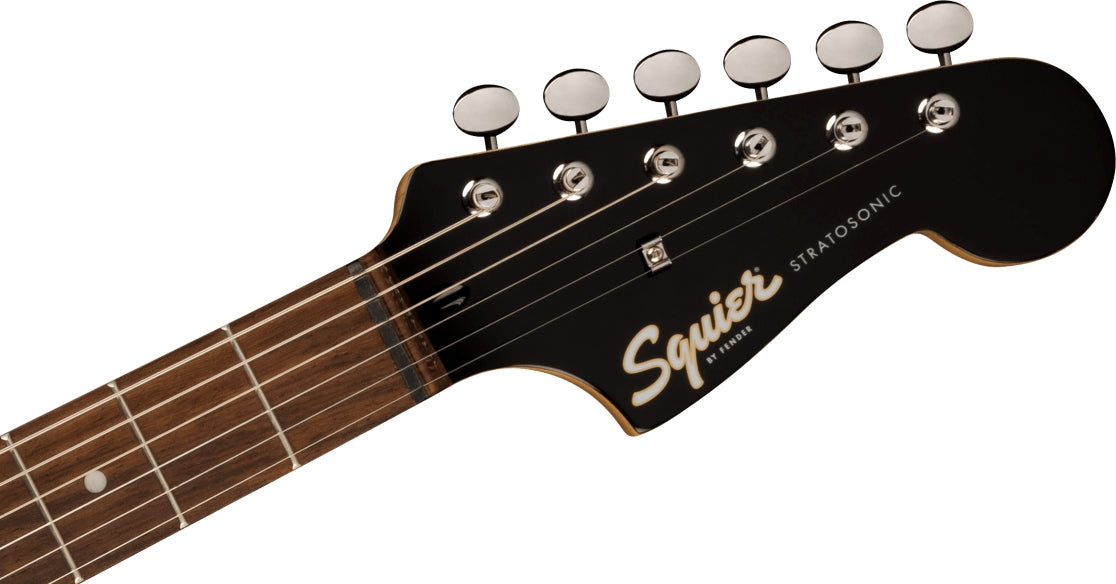 Making a comeback from its early-2000s Fender® origins, the Strat-O-Sonic brings several satisfying ingredients to the Stratocaster® recipe for a truly special Squier®. Featuring dual Fender-Designed alnico soapbar single-coil pickups with 3-way switching, push/pull controls for series/parallel and phase switching in position 2, a short and easy-to-play 24.75" scale length and a compensated wraparound-style bridge, this Paranormal model delivers bold, new flavor to a Fender favorite. Other player-friendly details include a slim and comfortable "C"-shaped neck profile with a fast-playing 12” radius fingerboard, a gloss neck finish for a slick yet confident feel, and vintage-style tuning machines for smooth, accurate tuning.