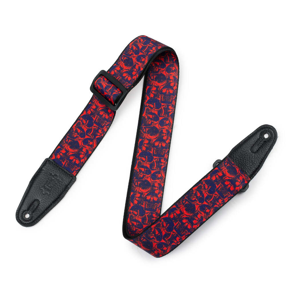 Levy's - 2-Inch Wide Polyester Guitar Strap with Purple & Red Skulls Motif MPD2-110
