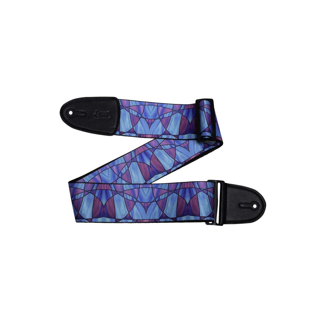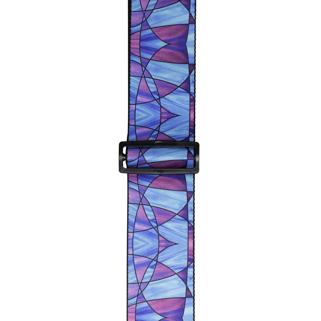 - Levy’s 3″ Wide Polypropylene Guitar Strap With Stained Glass Design In Plumb Blue