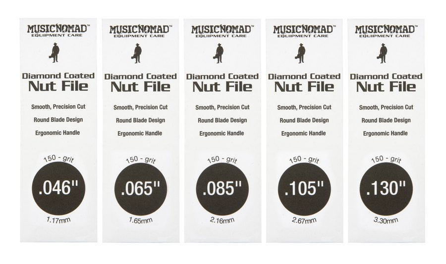 - Bass Nut File Set (0.046”, 0.065", 0.085", 0.105", 0.130") with Industrial-Strength Diamond Coating Comes in a Compact, Lightweight and Strong Aluminum Case (3" x 6" x 1.4")