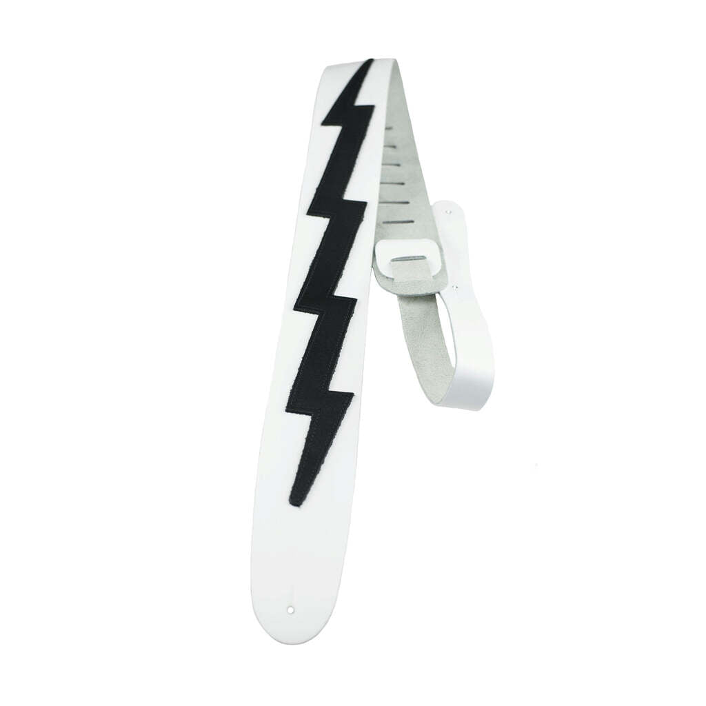 Perri's - 2.5" White / Black Famous Guitar Strap with Lightning Bolt - P25LB-1252